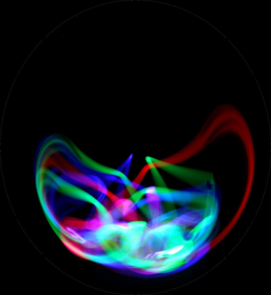 A: So I pop it into Photoshop and I crop it to the rule of thirds – this way, the design that you’ve danced into my camera is centered in a pleasing way. Usually, you don’t find true darkness, so I have to adjust the black levels and the individual colors. Then, since you were further away and were using the colored LED balls, I adjusted the saturation. I do this ONLY after I fix the light and dark balance, because if you don’t, you could end up with the night background looking a little…green.