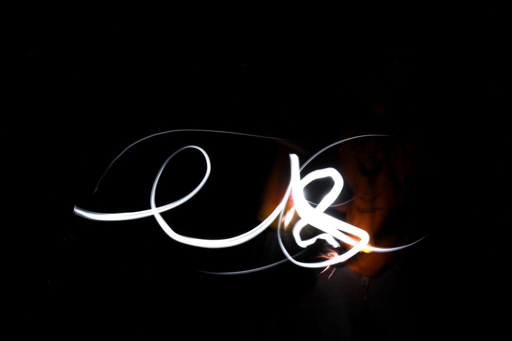 A: Night photography and working with light are some of the hardest aspects of photography. For those pictures, I used a setting called bulb. Bulb allows me to control the shutter speed with my finger. Usually when you are running a camera, the shutter speed is a predetermined number that you can change with a dial. But since the way you were moving and the patterns you were using were constantly changing, I decided to take the shots with bulb – that way, I could watch you, and whenever I decided to lift up my finger, that would determine my shutter speed.